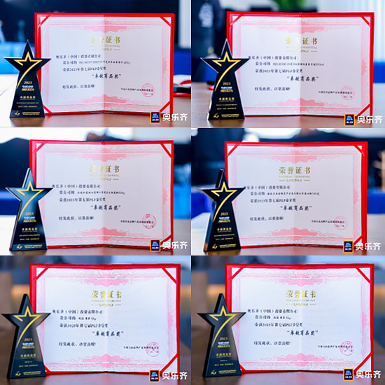 2023年12月,ALDI奥乐齐六款产品获全球自有品牌产品亚洲展第七届PLF金星奖“卓越商品奖”。包括:BELMONT BISCUIT巧克力味曲奇饼干400g、REGIONE CHE VAI莫德纳葡萄黑醋250ml、谷悦仁家潮汕有料牛骨清汤火锅底料800g、格拉尼亚诺限定产区意大利大管通心粉500克、超值番茄1kg、SPECIALLY SELECTED雷克菲尔葡萄园精选起泡红葡萄汁。