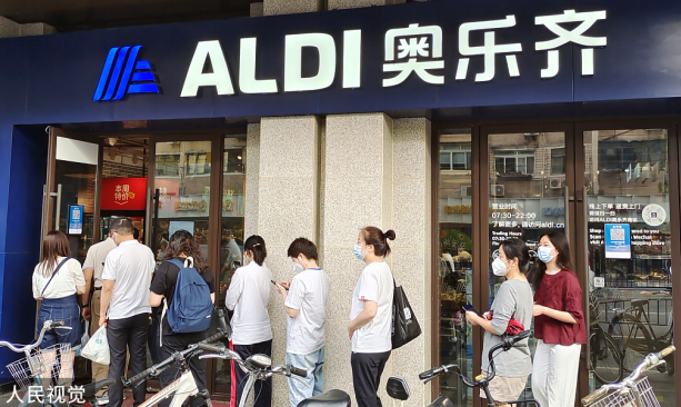 People go shoppingat an ALDI supermarket in Shanghai on June 9, 2022.[Photo/VCG]